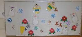 〈夏休みに工作に挑戦した先生の作品が「あったか美術館」に飾られています。〉