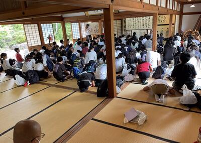 1日目は、班ごとの自主研修を行いました。鶴ヶ城をスタートし、班ごとに事前に計画した体験場所や見学場所に向かい、時にはハプニングに遭遇しながらも、ゴールである飯盛山に全員無事に集合することができました。