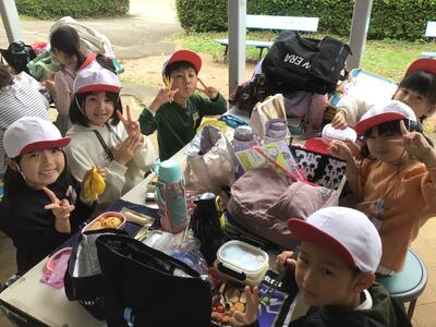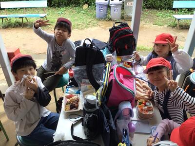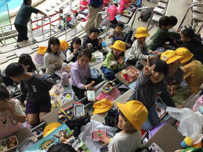 広い園内を歩き回った後は、お待ちかねのお昼ご飯!グループ毎にお弁当を美味しくいただきました!
