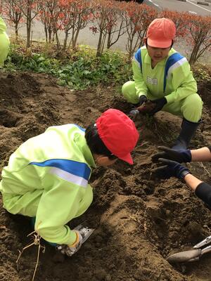 収穫したさつまいもやツルを運んだり、シャベルを片付けたりと、最後まで一生懸命頑張りました。