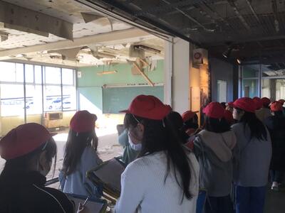 11月21日(木)、4年生は「震災遺構荒浜小学校」に校外学習に行ってきました。この校外学習の前までに、総合的な学習の時間などで東日本大震災や宮城県の過去の災害、そして防災についてたくさん調べました。