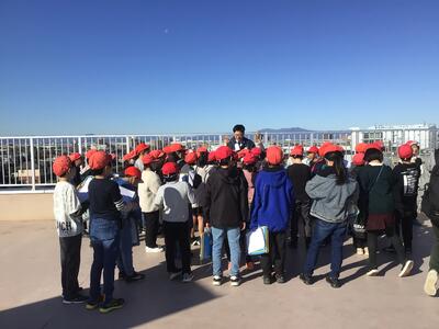 当日は、天気が良く、避難タワーの屋上からは遠くの景色も見ることができました。