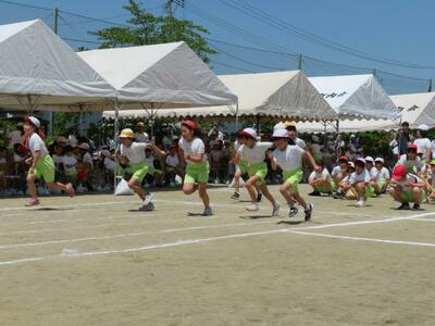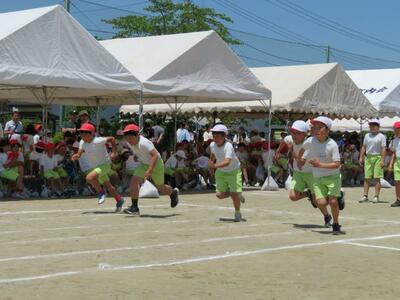 5月18日(土)雲一つない快晴の中、運動会を開催することができました。今年度から熱中症対策として,児童席に地域の方々の協力のもと,テントを設置しました。地域の皆様ありがとうございました。