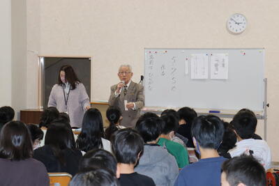 講師に川柳作家の新藤先生をお迎えし,はじめに川柳について講義をしていただきました。