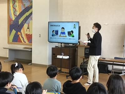 4年生は、8年後の18歳で成人の仲間入りです。平和で民主的な社会の形成者となれるよう、この活動を行いました。3名の講師の方々から、職業についてためになるお話をして頂きました。