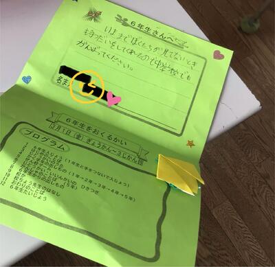 前日には、1年生から6年生1人1人に向けて手作りの招待状が送られました。
