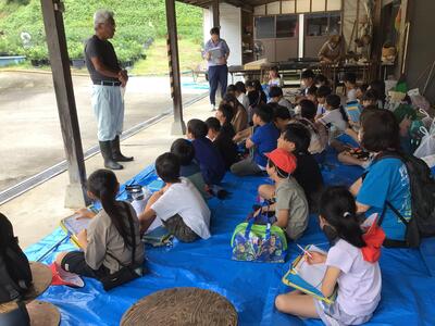 ブルーベリー摘み取り体験では、高橋農園さんに行きました。ブルーベリー作りを始めたきっかけや大変なことなど、子供たちのたくさんの質問に丁寧に答えていただきました。
