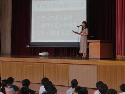 夏休み明けの全校集会では、「幸せになるための3つの力」について校長先生からお話しがありました。