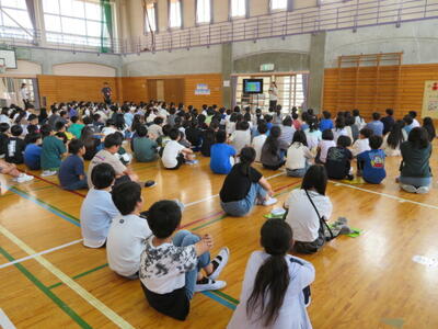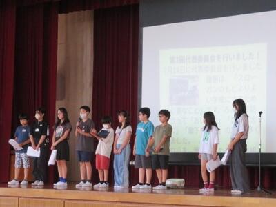 また、計画委員会の子供たちからよりよい学校にするために代表委員会で話し合ったことの報告があり、「生き物を大切に」と「1日5回あいさつ」を全校で頑張ることが呼び掛けられました。